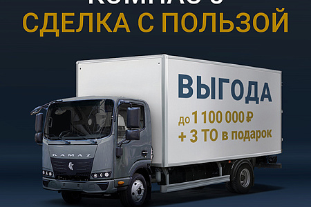 Самый молодой представитель семейства грузовиков КАМАЗ Компас стал победителем онлайн голосования в номинации «Фургон / малотоннажник года» конкурса «Лучший коммерческий автомобиль года в России 2024».